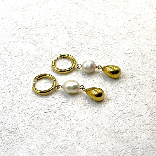 Dulcia Freshwater Irregular Pearl Drop Earrings - 18K Gold Plated