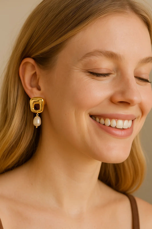 Ealga Gold Square Dangle With Freshwater Pearl - 18K Gold Plated