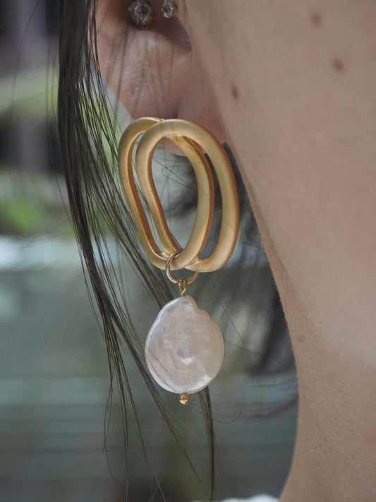 Eartha Freshwater Button Pearl Double Gold Rings Dangle EarringsRegular price HK$350.00Regular priceUnit price / per-