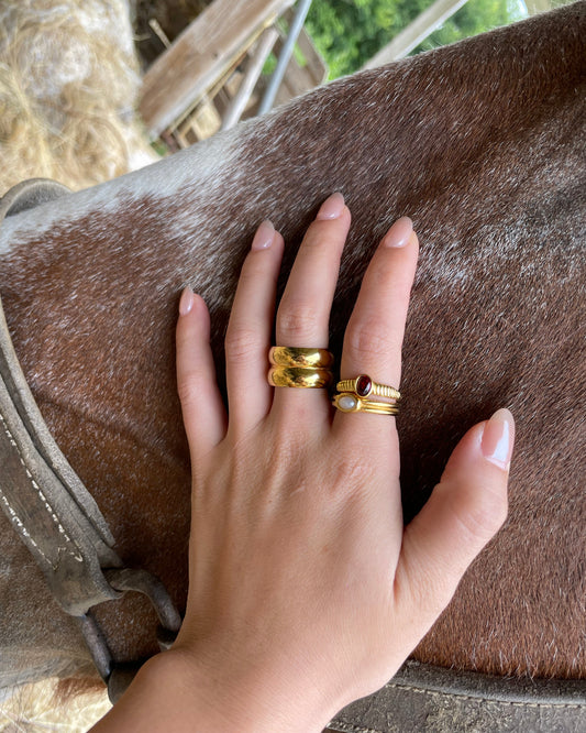 Earthaelle Double Layers Gold Ring With Pearl- 18K Gold Plated