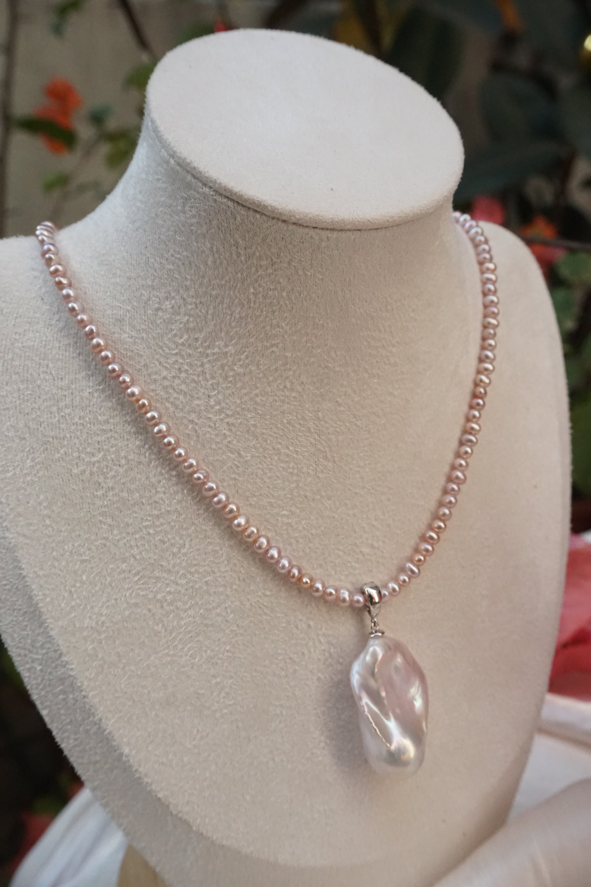 Enhance your style with our Eydra 3-4mm freshwater pink Keshi pearl necklace. The strands style of small Keshi pearls will beautifully accent any outfit, making you feel elegant and sophisticated. Crafted with sterling silver for a touch of luxury.